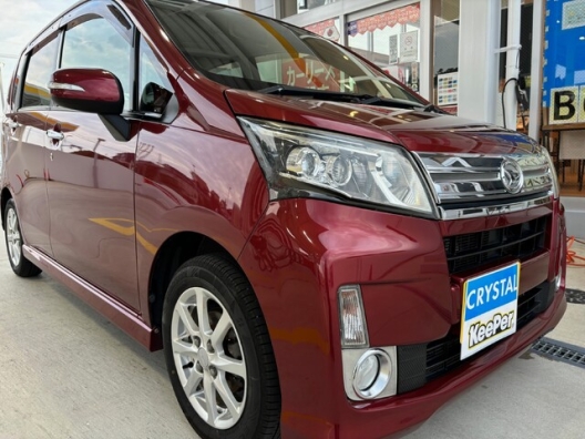 | 担当者コメント | 今回、ダイヤモンドキーパー・ガラスコート(全面)・ホイールコーティングを施工させていただきました。 新車より3年経過しているお車でしたが、ボディの状態はとても良く、水垢や水ジミはありませんでした。 ボディ色の赤も深みが増し艶もしっかり出ているのでお客様にも大変満足して頂けました。 |