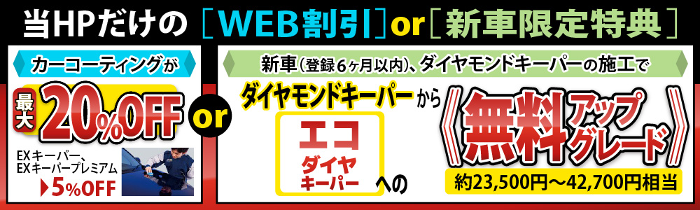 | 特徴 | ダブルダイヤキーパーのボディへの施工に加えて、さらに、ガラスコーティングを下記の「施工箇所」に施工いたします! |